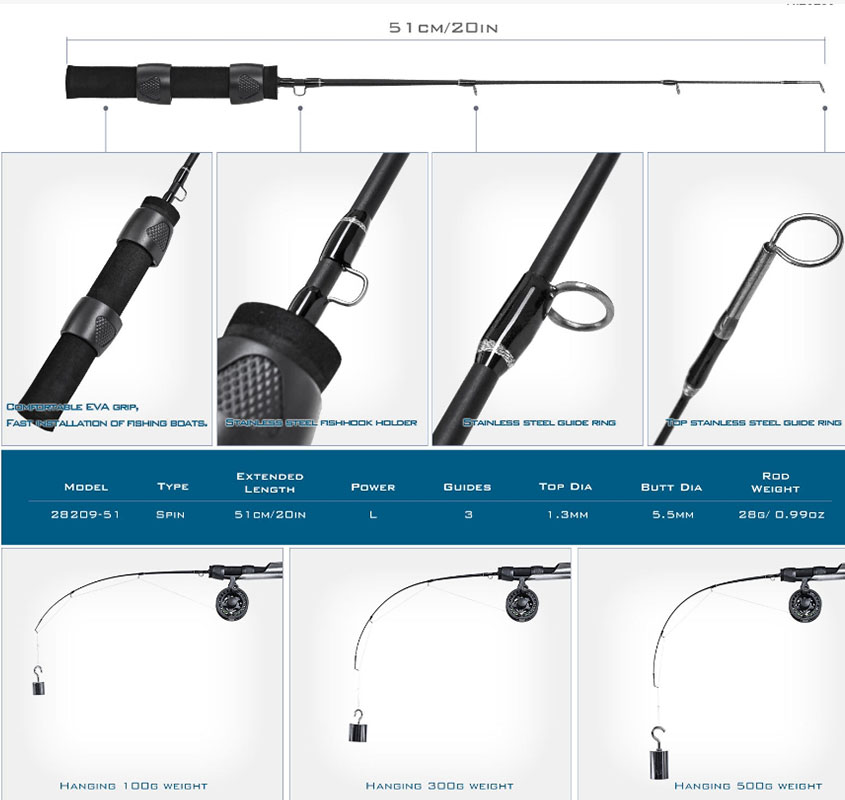 ~子甄彣璟~黑色獨節冰釣竿51cm 冰釣 筏竿 船竿 魚竿 海竿 釣魚竿 釣竿 海釣 船釣 釣魚(含捲線器)